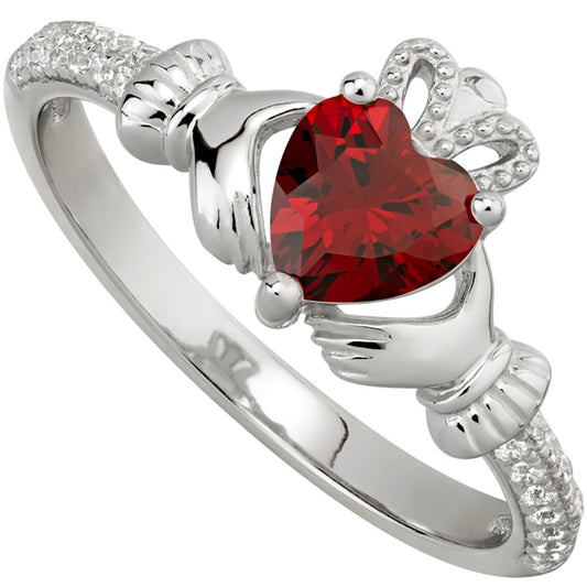 Irish Ladies Sterling Silver Crystal Birthstone Claddagh Ring