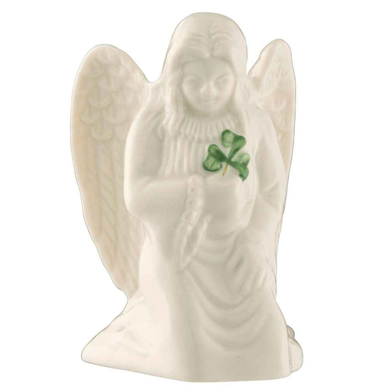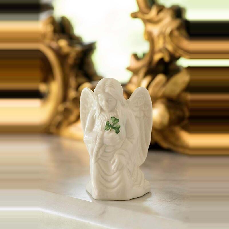 In ancient Ireland there was a belief that everyone had a guardian angel to protect them from danger or harm. Thus the idea for the Belleek Angel of Protection came into being. This cute kneeling angel is holding a shamrock, a symbol of good luck and good fortune and will serve as a reminder that everyone has their own guardian angel, to keep one safe and well for all the ups and downs of everyday life. 2.2"L x 2.1"W x 3.3"H. Handcrafted in Ireland of fine Parian China. Shipped separately please allow 1-2 weeks for delivery.