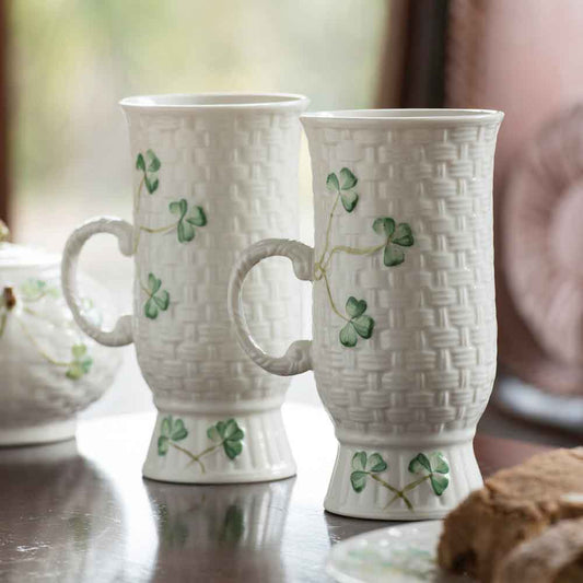 Belleek Pottery | Field of Shamrocks Mugs Set of 2