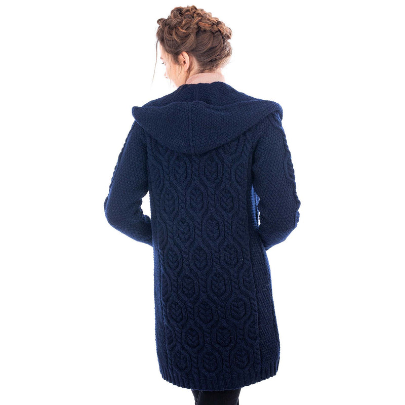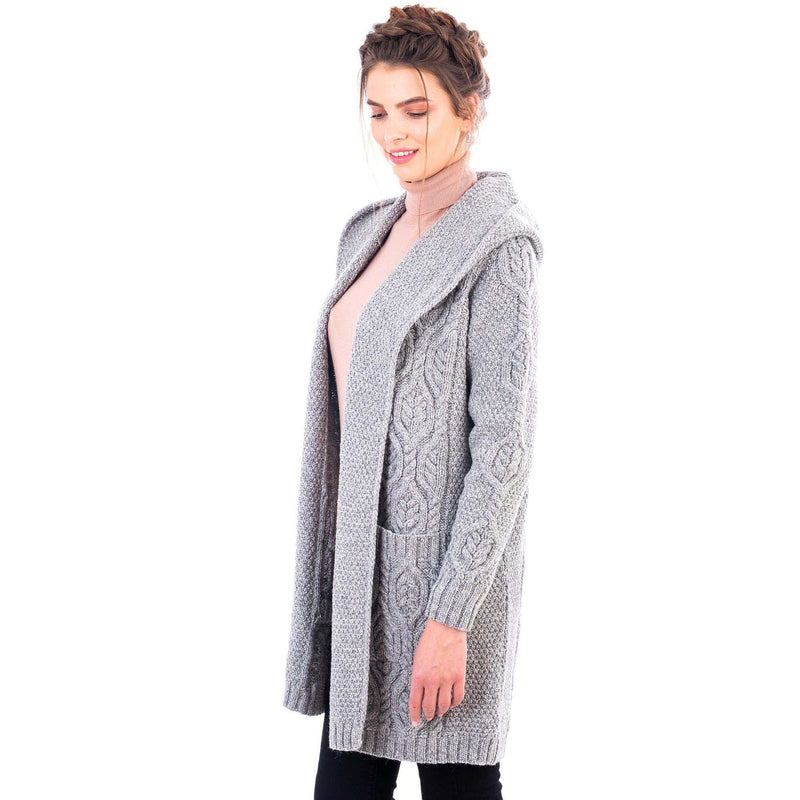 Irish Coat | Aran Knit Hooded Ladies Long Cardigan