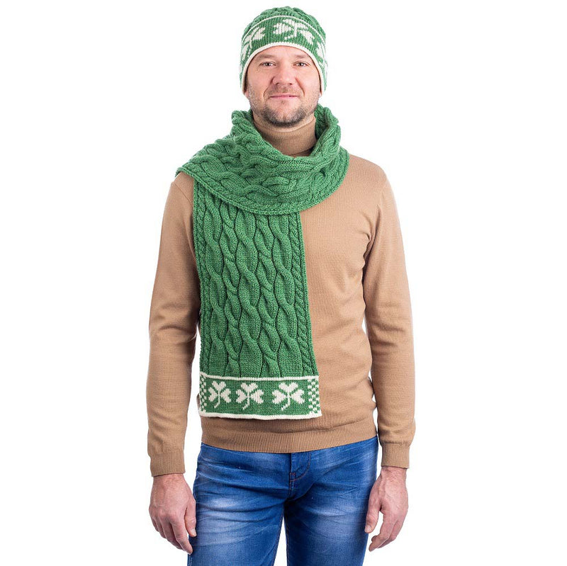 Irish Scarf | Aran Cable Knit Merino Wool Shamrock Mens Scarf