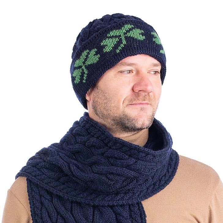 Irish Hat | Merino Wool Cable Knit Shamrock Mens Hat
