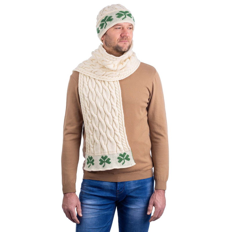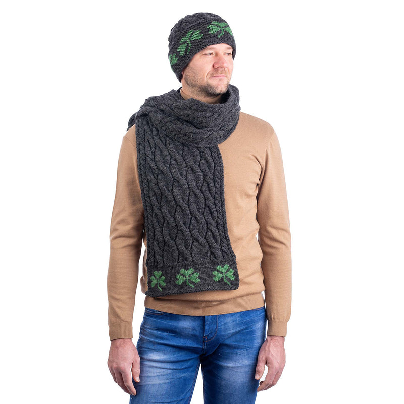 Irish Scarf | Merino Wool Cable Knit Shamrock Mens Scarf