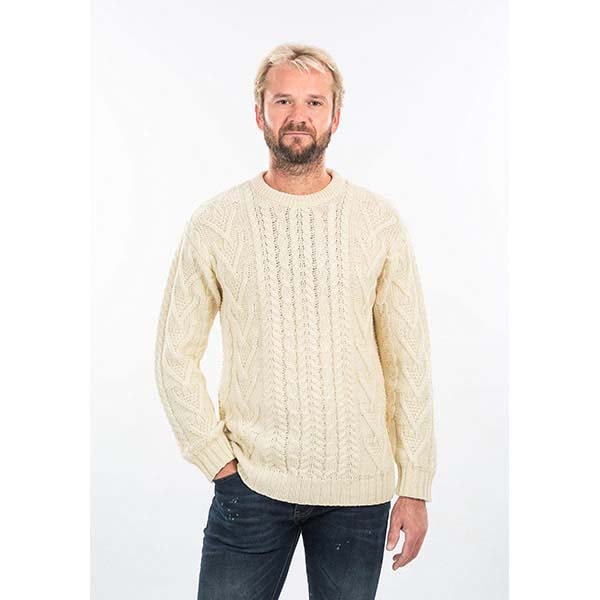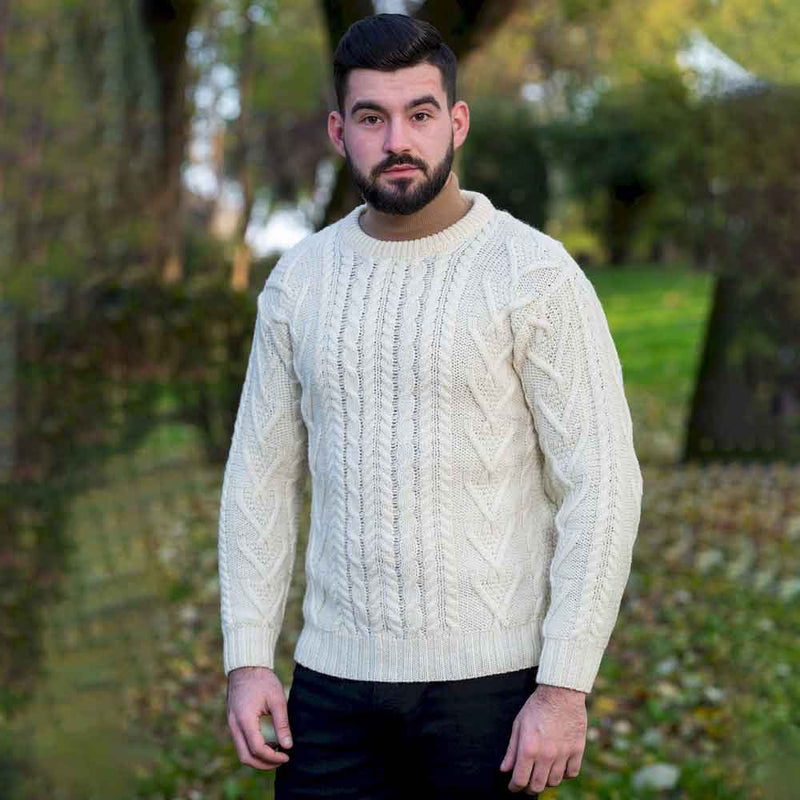 SALE | Irish Sweater | Merino Wool Traditional Aran Knit Crew Neck Mens Sweater