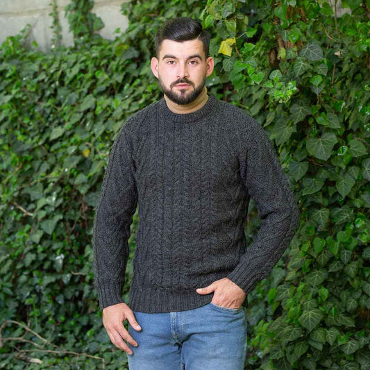 SALE | Irish Sweater | Merino Wool Traditional Aran Knit Crew Neck Mens Sweater