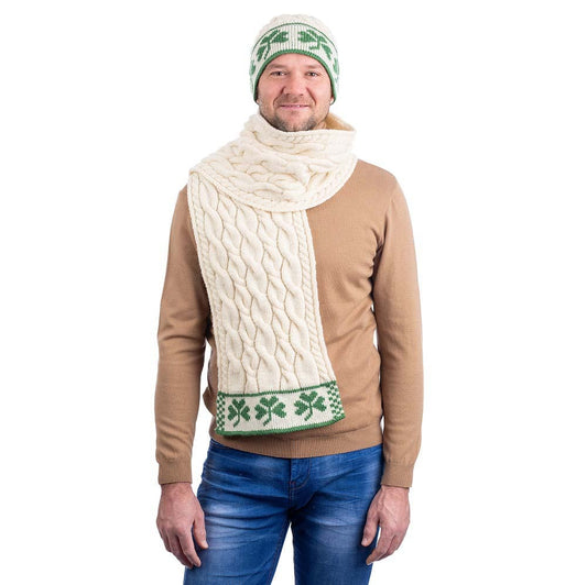 Irish Scarf | Merino Wool Cable Knit Shamrock Mens Scarf