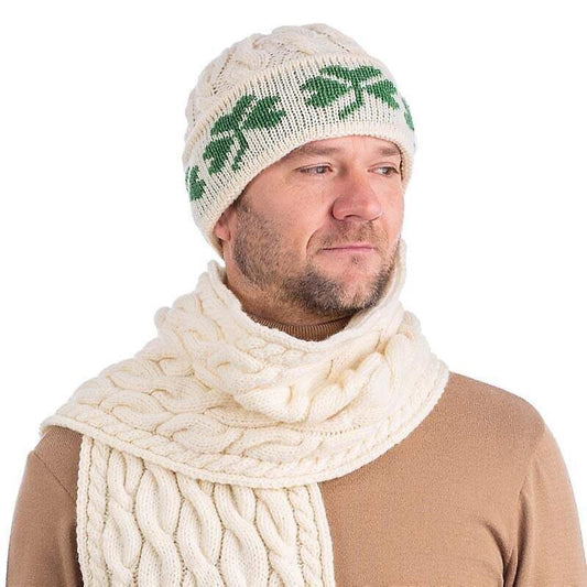 Irish Hat | Merino Wool Cable Knit Shamrock Mens Hat