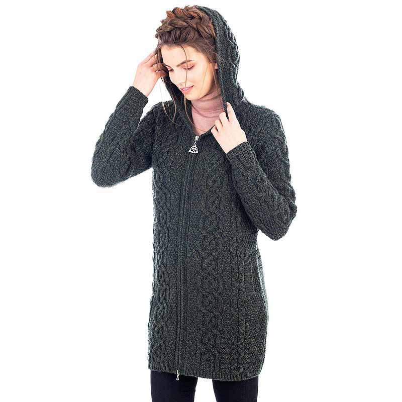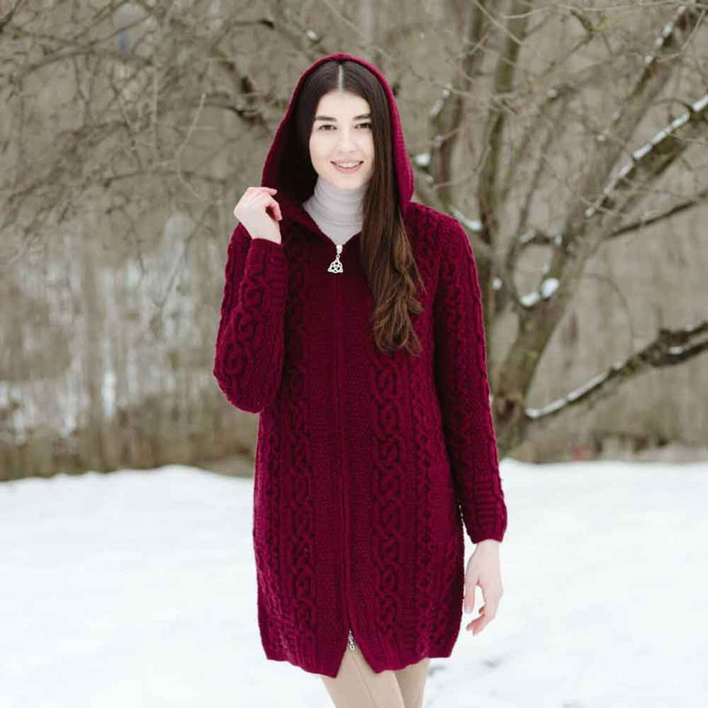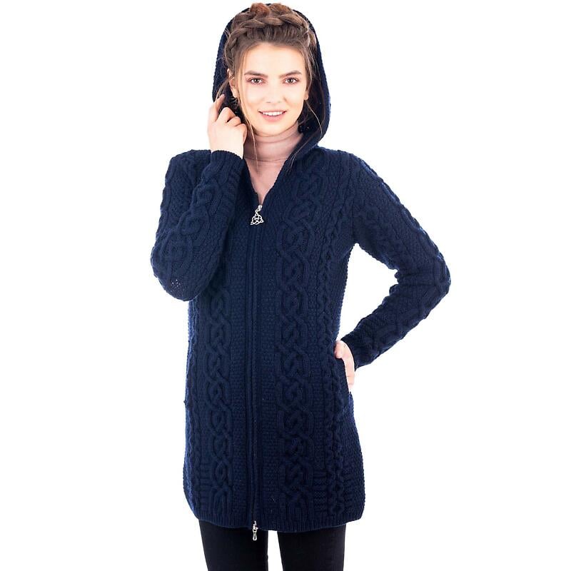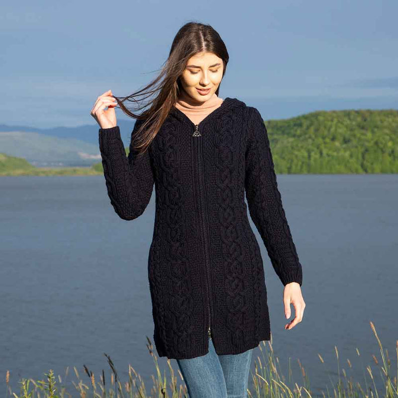 Irish Coat | Merino Wool Celtic Aran Knit Ladies Jacket
