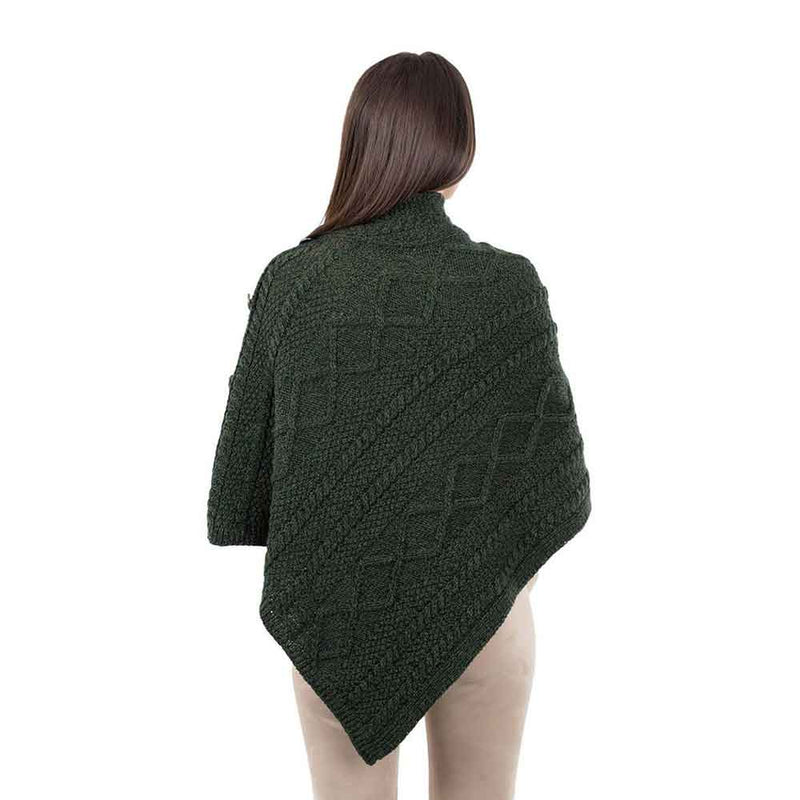 Irish Shawl | Aran Cable Knit Cowl Neck Celtic Button Poncho
