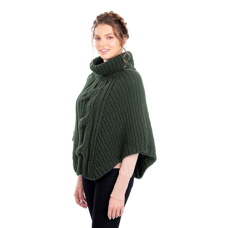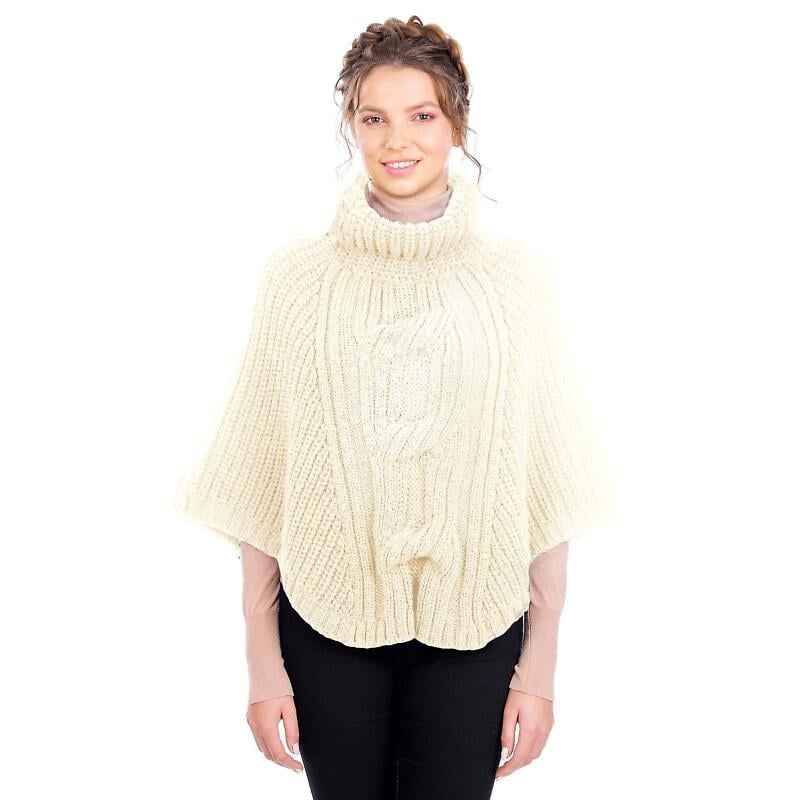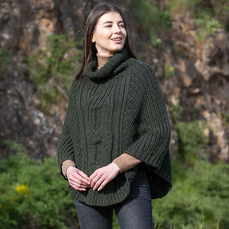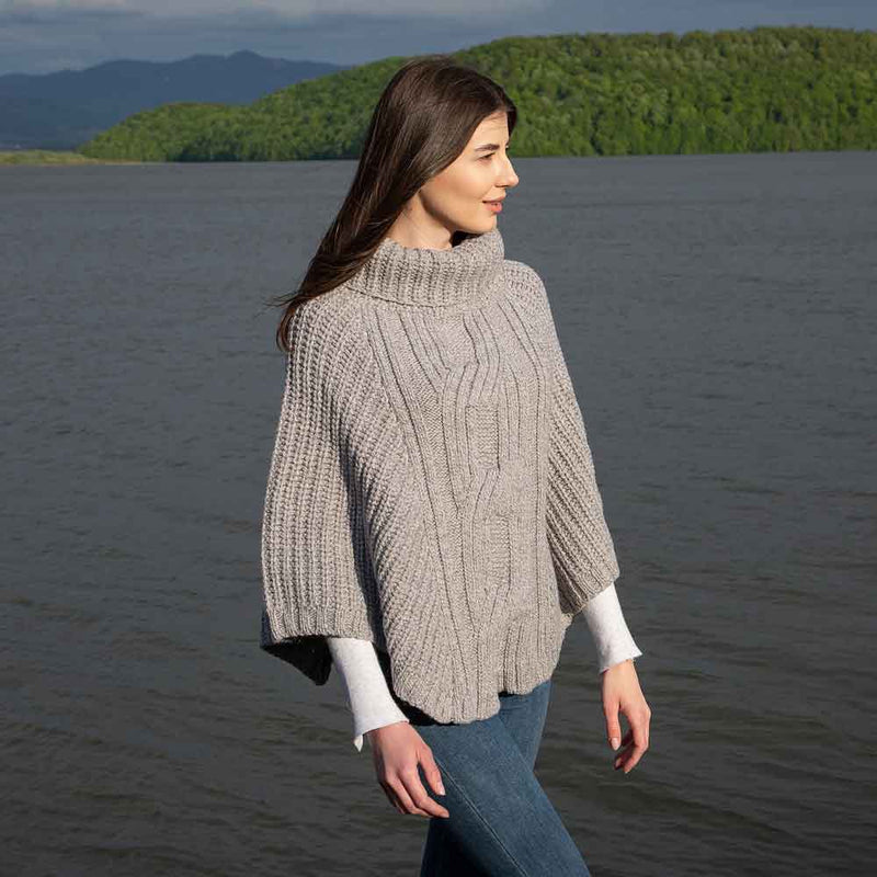 Irish Shawl | Merino Wool Cable Knit Cowlneck Ladies Poncho