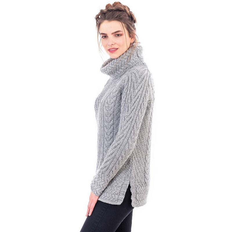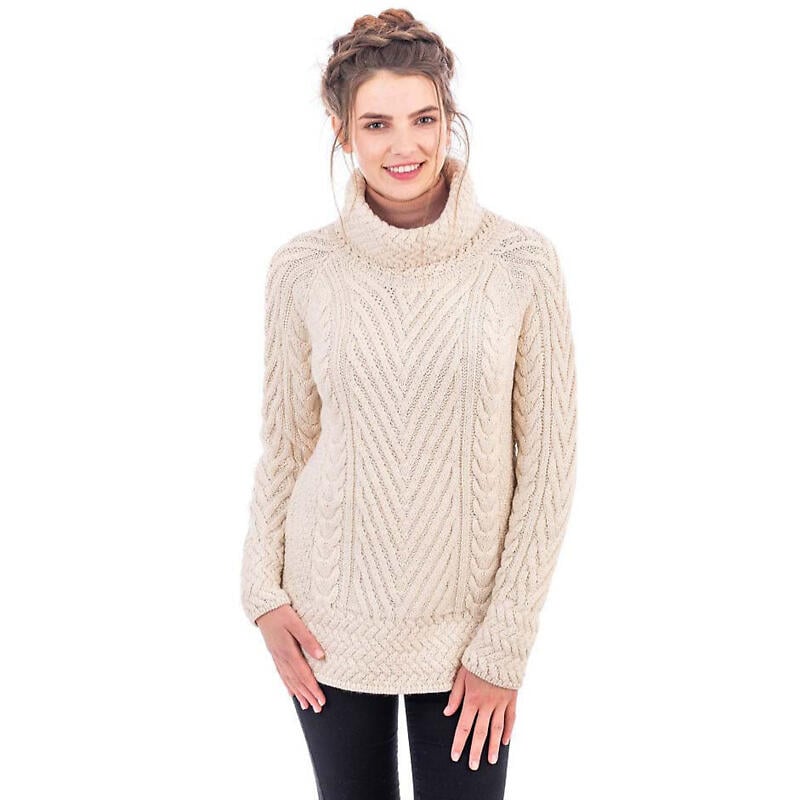 Irish Sweater | Ribbed Cable Knit Turtleneck Ladies Sweater