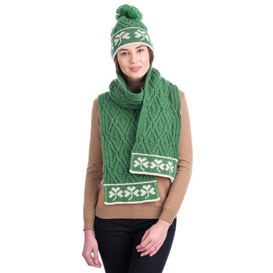 Irish Scarf | Merino Wool Aran Cable Knit Shamrock Ladies Scarf