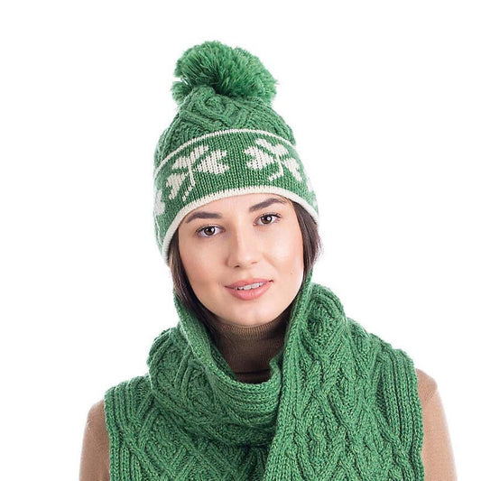 Irish Hat | Merino Wool Shamrock Aran Ladies Hat