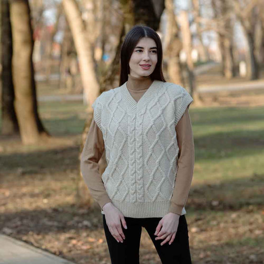 Irish Sweater | Oversized Aran Cable Knit Vest