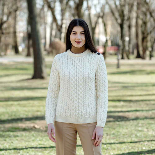 Irish Sweater | Ladies Side Button Aran Knit Sweater
