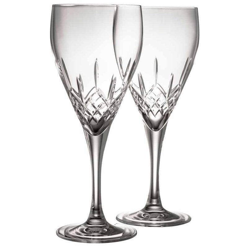 Wine glasses with a touch of Irish class, this elegant pair from Galway Crystal is cut with their ever-popular Longford pattern. This style is the longest-running design in the Galway Irish Crystal range and its enduring popularity shows that like a fine wine, it is only getting better with age. The ideal gift for a new home, wedding, or anniversary. An ideal accompaniment to every special occasion or meal.