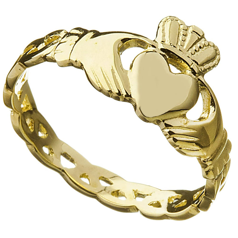 Claddagh Ring - Ladies Irish 10k Gold Trinity Knot Weave Celtic Band