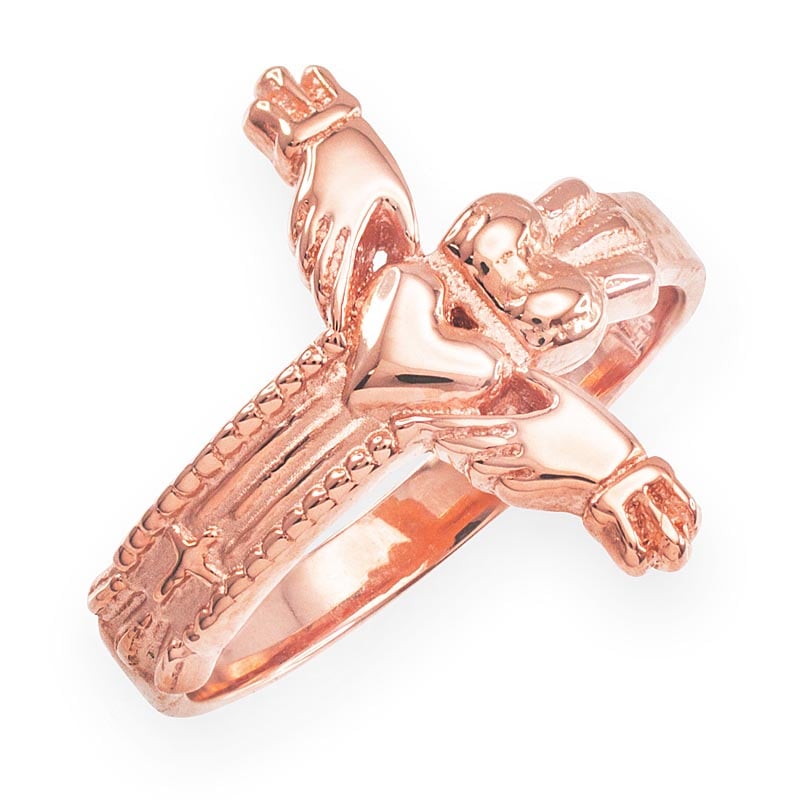 Home / Irish Jewelry / Celtic Rings / Claddagh Ring - Rose Gold Classic Claddagh Cross Ring