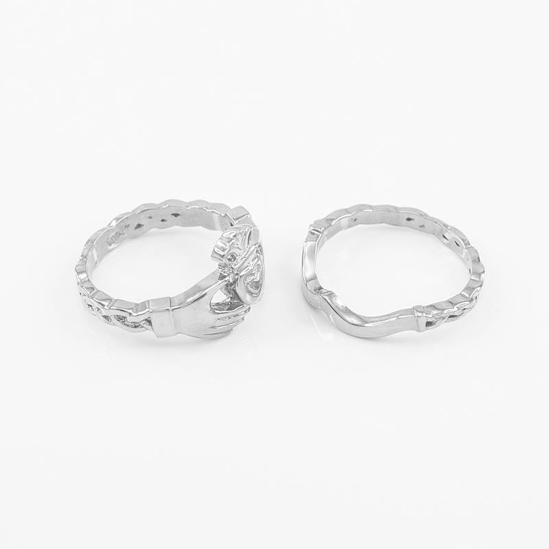 Claddagh Ring - Two-Piece Sterling Silver Claddagh Engagement Ring with Celtic Band