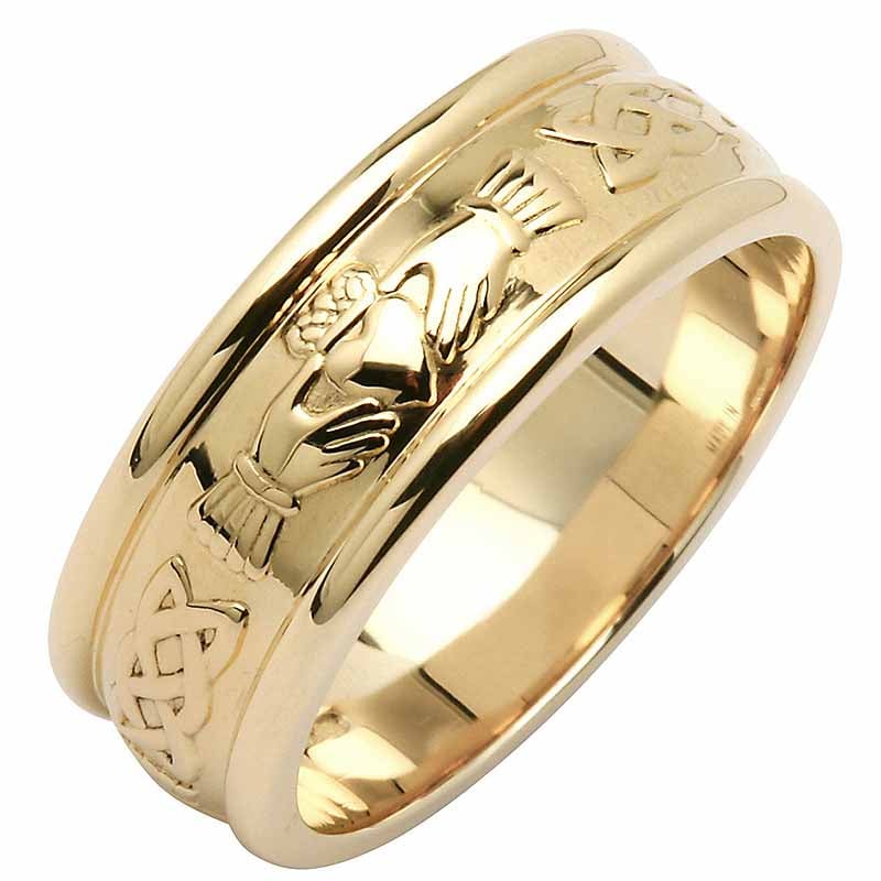 Irish Wedding Ring - Men's Wide Corrib Claddagh Wedding Band