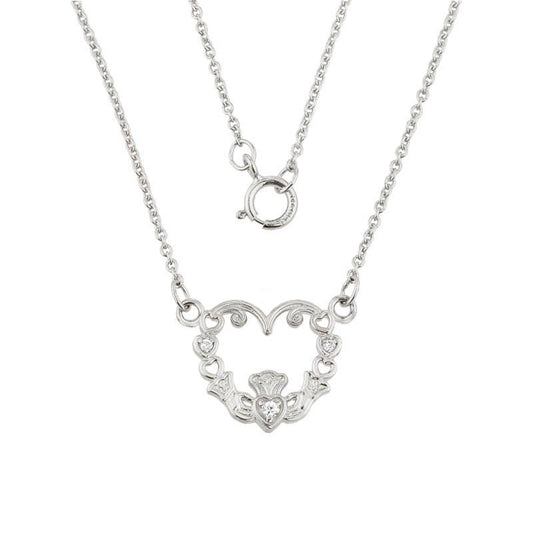 Irish Necklace - Sterling Silver Classic Claddagh Pendant with Chain