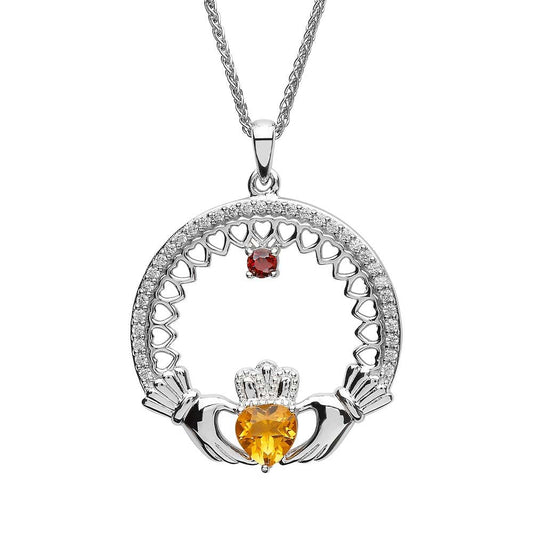 Claddagh Necklace | Mother's Family Birthstone Sterling Silver Pendant