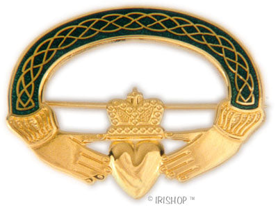 The traditional Celtic Brooch, combined with the Claddagh design to produce a modern elegance.