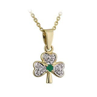 This delightful Irish necklace features a gold plated Shamrock Necklace on an 18 inch chain. The leaves of the shamrock are embellished with sparkling crystals and a green crystal at the center completes the look.
