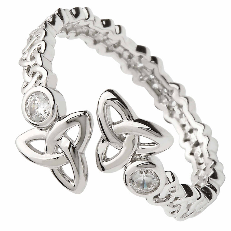 SALE | Irish Ring | Sterling Silver Crystal Crossover Double Trinity Knot Ring