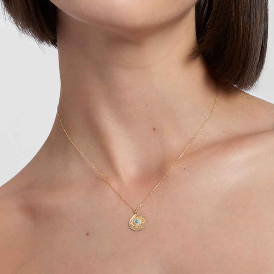 Irish Necklace | 9k Gold Turquoise Crystal Evil Eye Pendant
