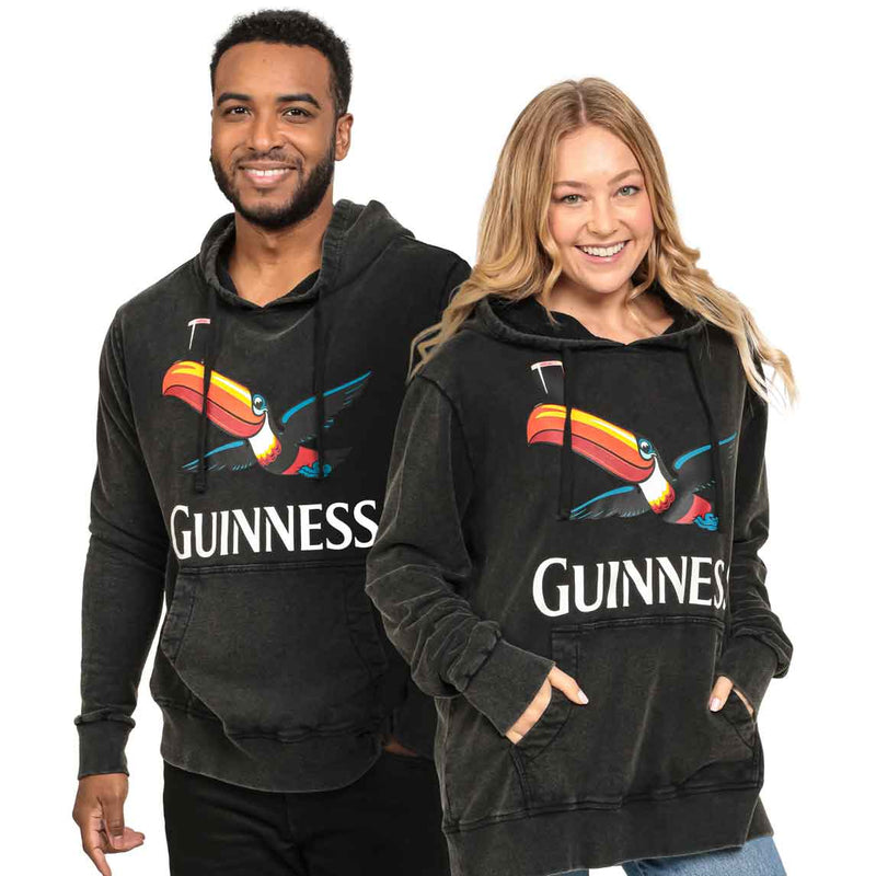 Modern fashion and vintage styles combine in this iconic Irish hooded sweatshirt. Your favorite Irish brand Guinness® is renowned for their beloved toucan mascot, and his bright colors contrast brilliantly with the distressed charcoal for a look that is perfectly on point. This is destined to be a favorite in your wardrobe all year round. It features a drawstring hood and kangaroo pocket. Ideal for her or for him thanks to its unisex fit, it is a great gift for the Guinness® enthusiast in your life.