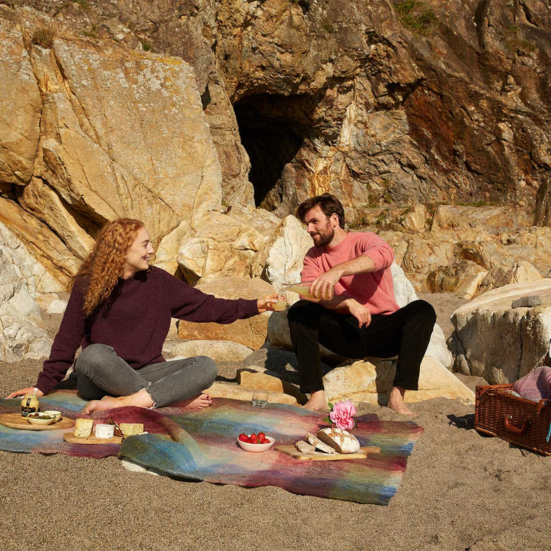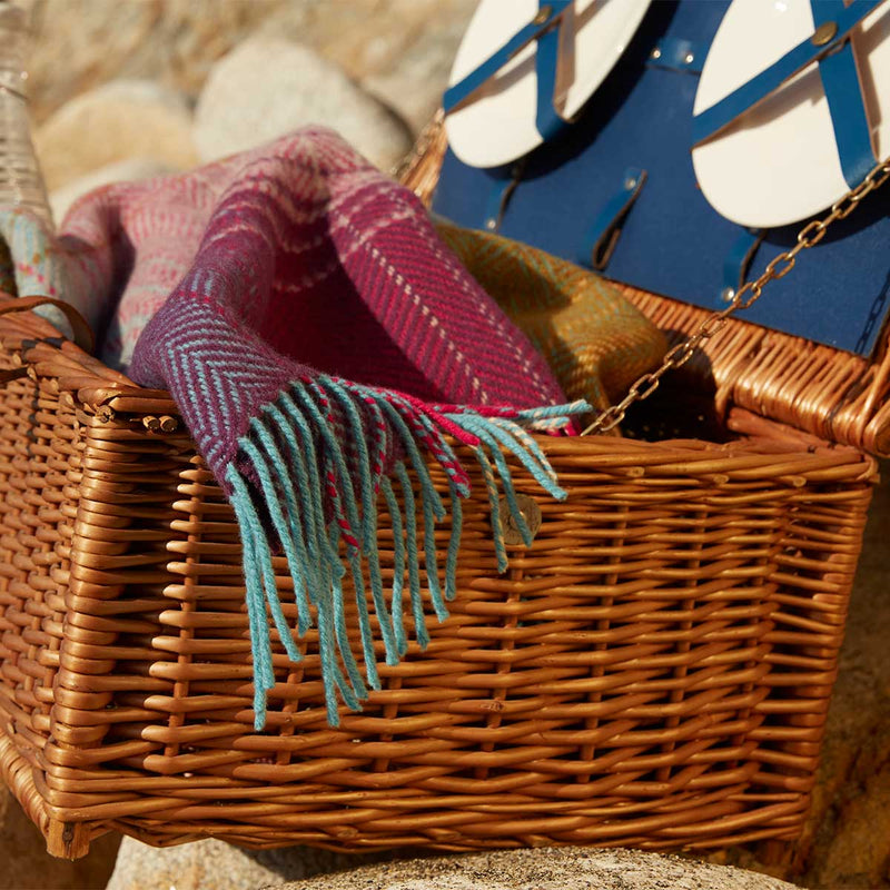 Bright and beautiful you will fall in love with this fabulous Irish throw. Made with 100% mohair for a feel that is soft and light, while being comfortable and cozy when you need it. This versatile design makes a great addition to a sofa, or brightens up the end of a bed. Picnic or dine outdoors in style, with this making a elegant picnic blanket, or keep wrapped up warm on the porch or decking in the evening.