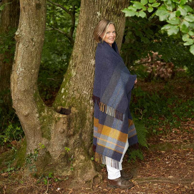 A luxurious Irish throw that looks fabulous and feels so comfortable. Whether you use this to complement your existing décor in your home, or carry it with you to dine outdoors, this versatile blanket is sure to be a favorite. Inspired by Dingle, in County Kerry, the blue and golden tones recall the coast of line and its sandy beach. The sumptuous blend of merino wool and cashmere, with herringbone pattern and fringed edge makes for a timeless style that works whether draped over the couch or sofa, across your knees or wrapped around you on those chilly evenings. A perfect gift for a wedding, anniversary or new home.