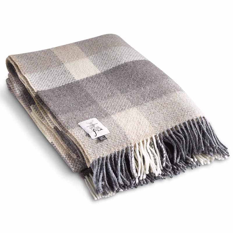 A traditional, neutral palette of cream, charcoal and grey adorns this stylish and luxurious Irish throw. The soft merino wool and cashmere blend creates a feel that complements any furniture. Ideal for draping over the end of your bed, or hanging on the sofa, this style will work with almost any decor. A versatile piece, it is perfect for picnics, or wrapping around you when dining outdoors. This classic blanket makes a great gift for a new home, mother's day, wedding anniversary or for a grandparent.