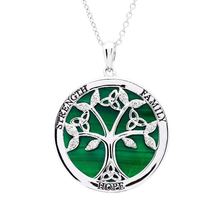 Irish Necklace | Sterling Silver Malachite CZ Celtic Tree of Life Pendant