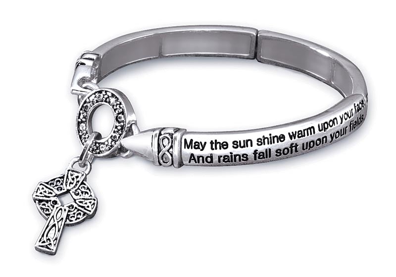 The most beloved Irish Blessing is featured on our Irish Blessing Stretch Bracelet. Silver-plated and stretches to fit most women.