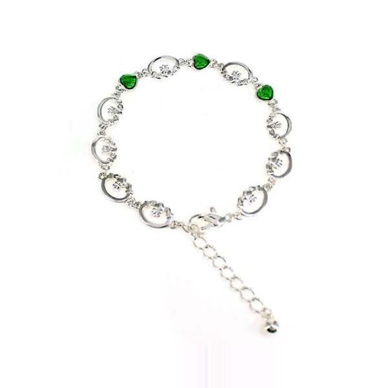 Home / Irish Jewelry / Bracelets / Irish Bracelet - Green Crystal Set Claddagh Ankle Bracelet