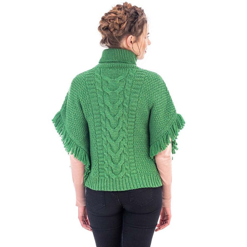 Irish Shawl | Merino Wool Aran Knit Cowl Neck Ladies Poncho