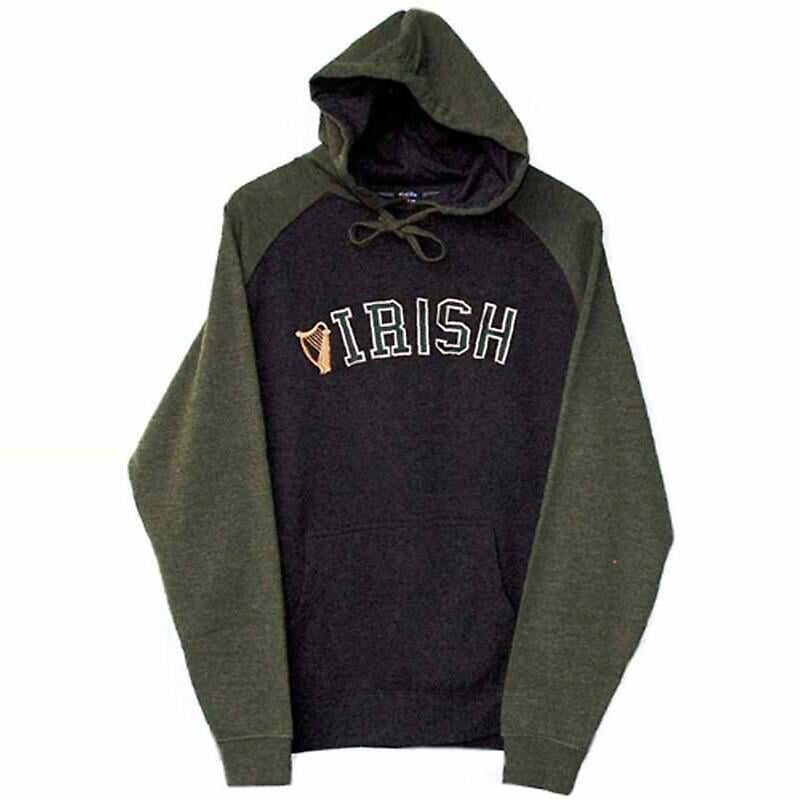 Irish Sweatshirt - Charcoal and Green Irish with Harp Embroidered Hooded Sweatshirt