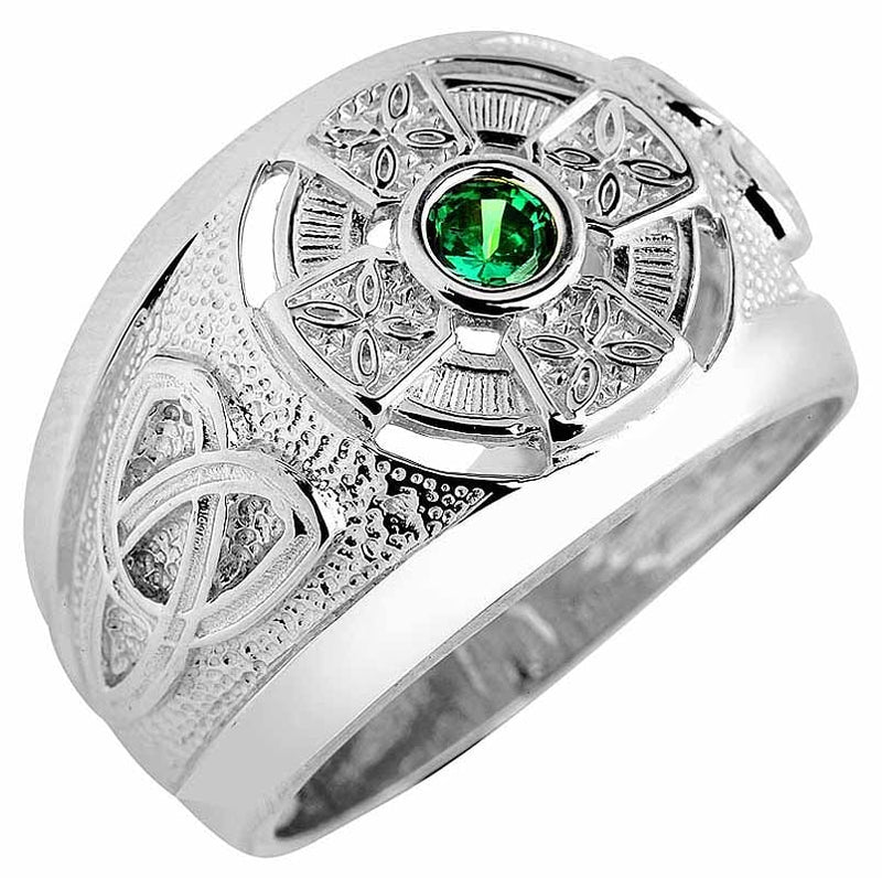 Celtic Ring - Men's White Gold Celtic Ring with Emerald