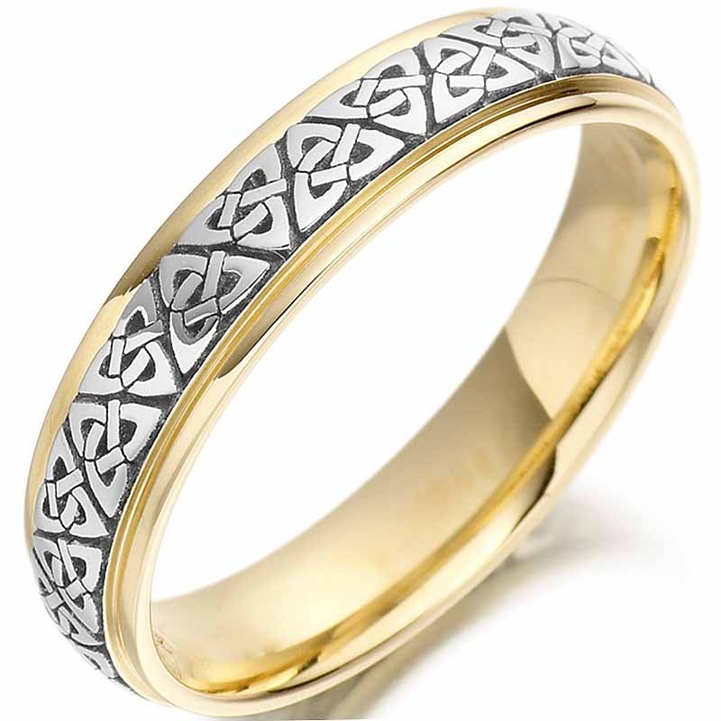 Trinity Knot Wedding Ring - Ladies Two Tone Trinity Celtic Knot Irish Wedding Band