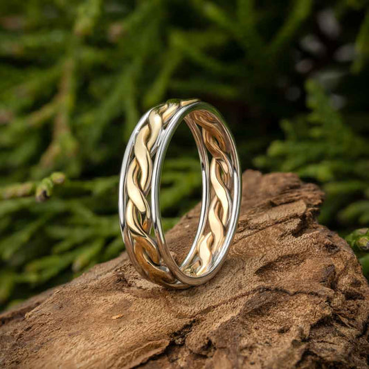 Irish Wedding Ring - Mens Gold Two Tone Celtic Knot Wedding Band