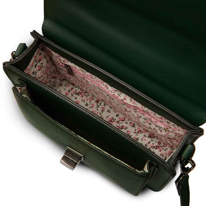 Its structured design keeps it rigid, protecting your belongings, in the two compartments, decorated with a lovely floral lining with additional zip pocket on the interior and closes with a twist clasp. A further zip compartment at the back completes this luxurious bag.