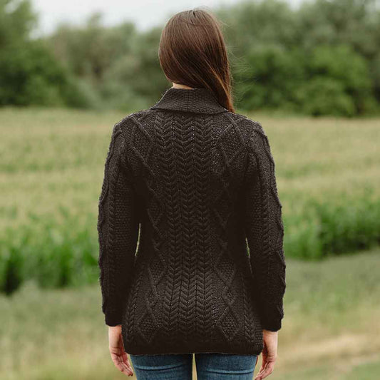 Irish Cardigan | Ladies Aran Knit Shawl Collar Cardigan