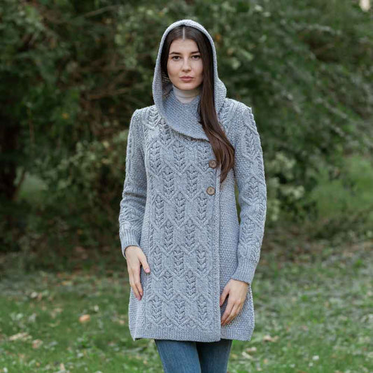 Irish Coat | Ladies Aran Leaf Cable Knit Coat