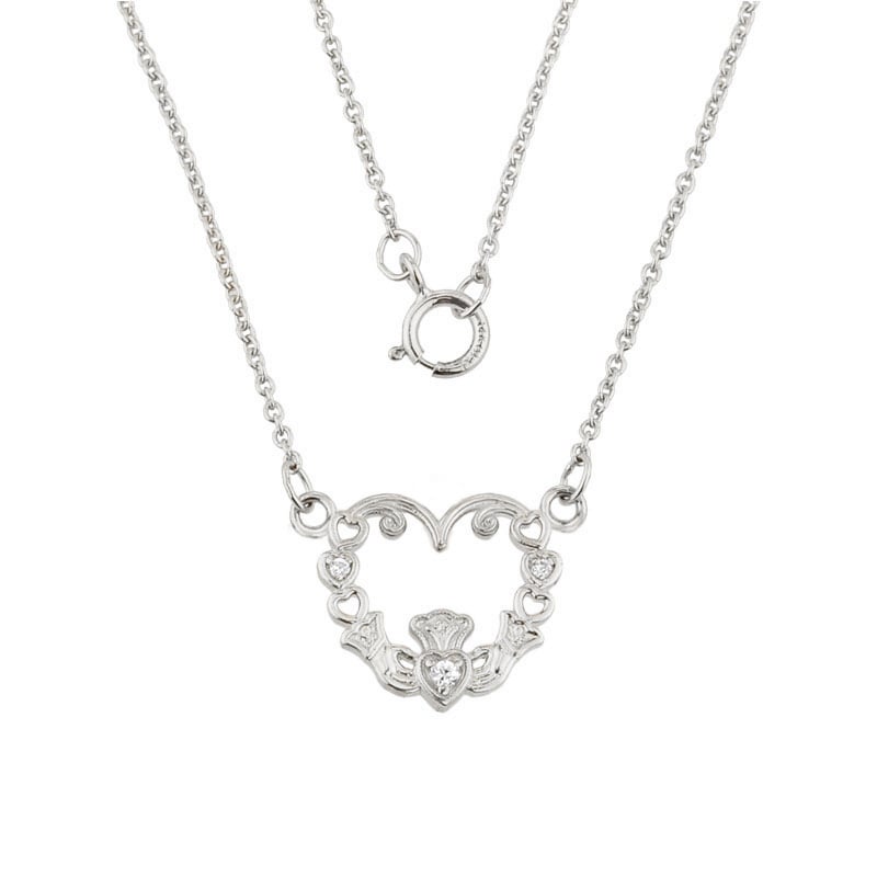 Claddagh Necklace - 14K White Gold Diamond Claddagh Necklace