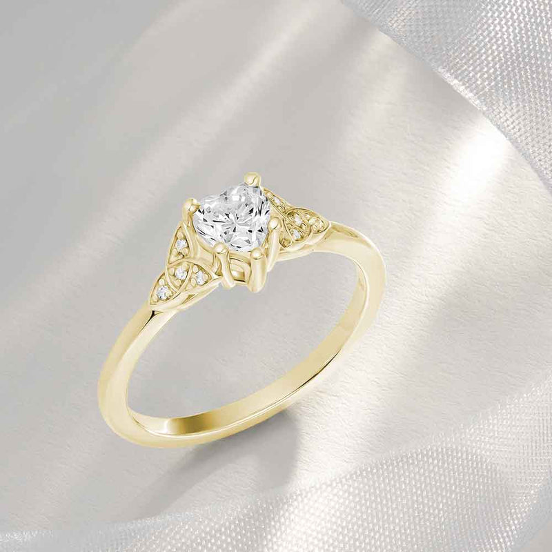 Irish Engagement Ring | Cliodhna 14K Yellow Diamond Heart Celtic Trinity Knot Ring