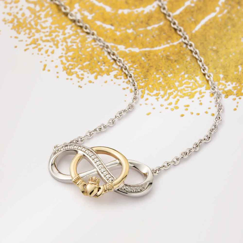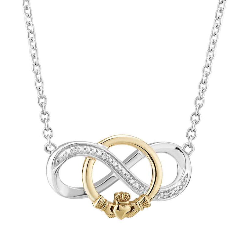 Irish Necklace | 10k Gold & Sterling Silver Diamond Infinity Claddagh Necklet