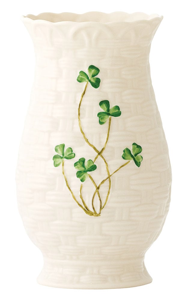 The Kylemore Belleek Vase is named after the beautiful Kylemore Abbey, in Connemara, Co. Galway. Each piece is based on a basketweave design with delicately applied hand painted shamrocks. The Kylemore 7" Belleek Vase is handcrafted in Ireland of fine Parian China. 3.5"W x 7"H. Shipped separately - please allow 1-2 weeks for delivery.