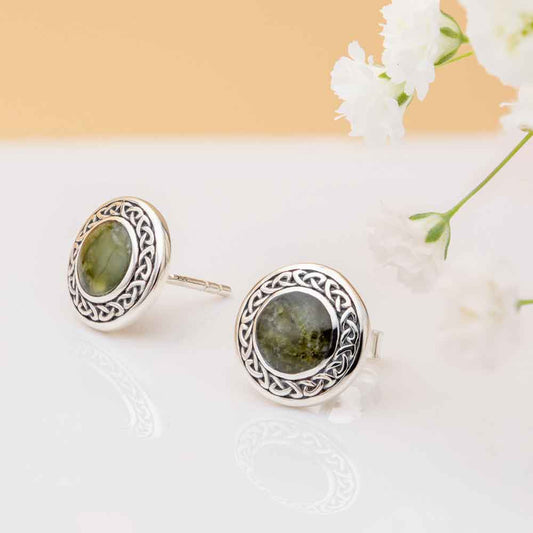 Irish Earrings | Connemara Marble Sterling Silver Celtic Knot Stud Earrings